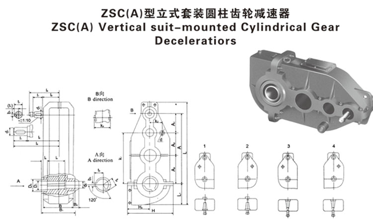 ZSCA800齿轮减速机为立式套装产品,起重机用,输出轴是空心轴,主机设备轴经过平键伸入空心轴内,减速机有拉杆固定,ZSCA起重机用减速机为软齿面减速机,选用45铸钢制造齿轮,齿轴,调质处理。